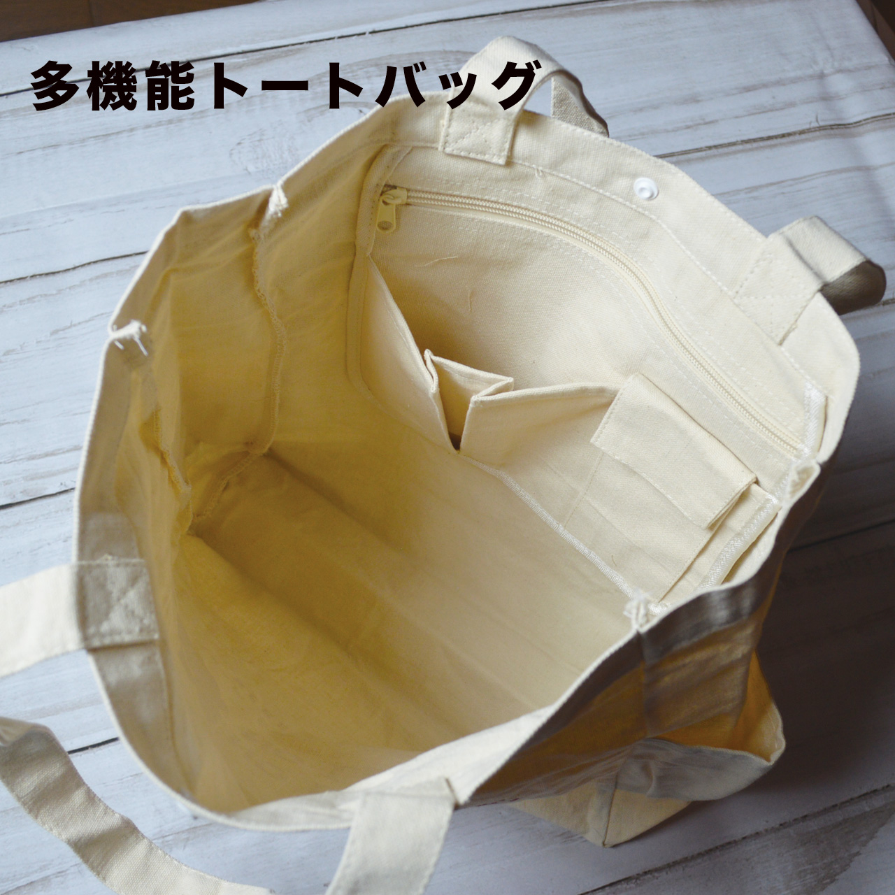 このトートバックは買い物時はもちろんの事、お出かけにも重宝する機能があります。
